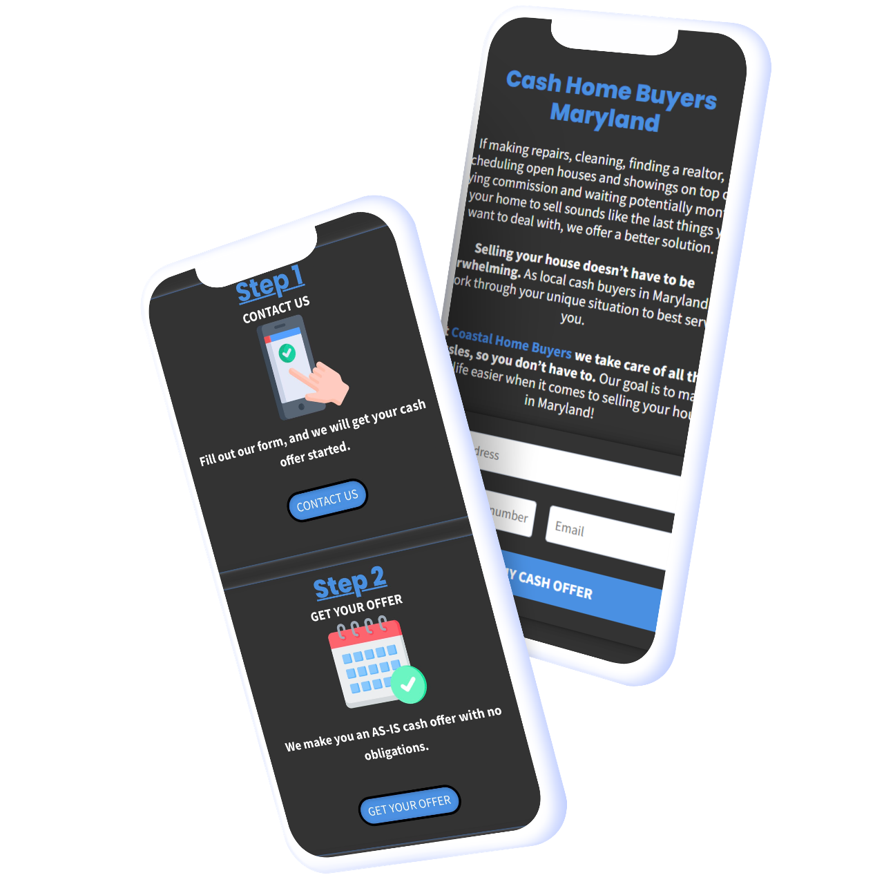 Not ready to submit your property info?You can reach out to Coastal Home Buyers directly by calling or texting us at(410) 775-6851